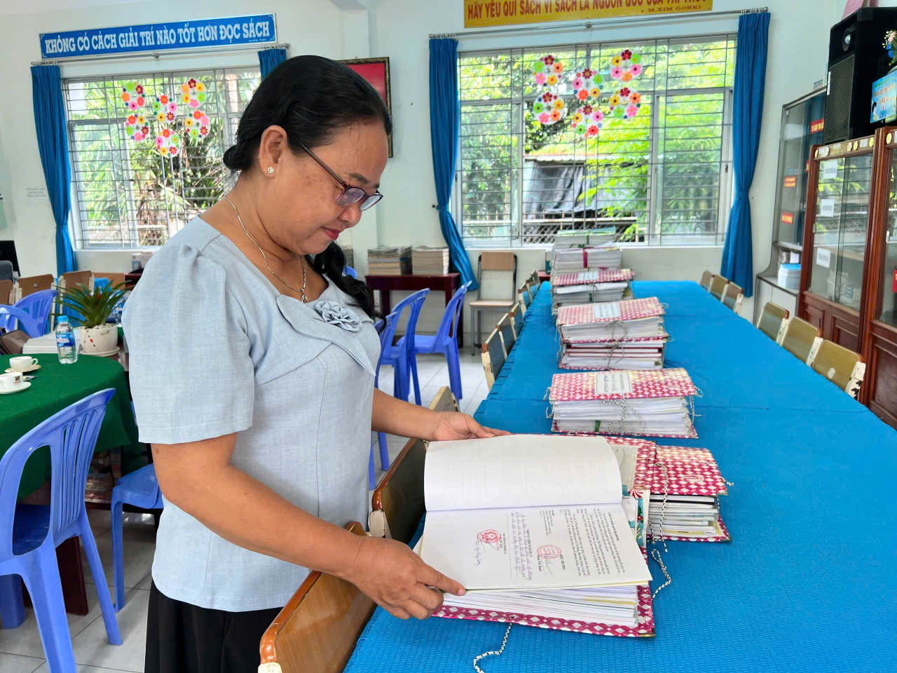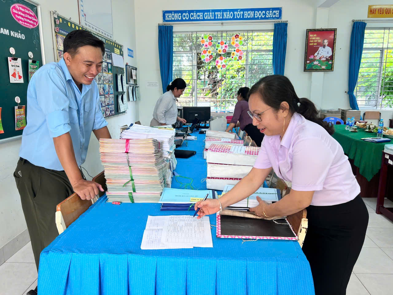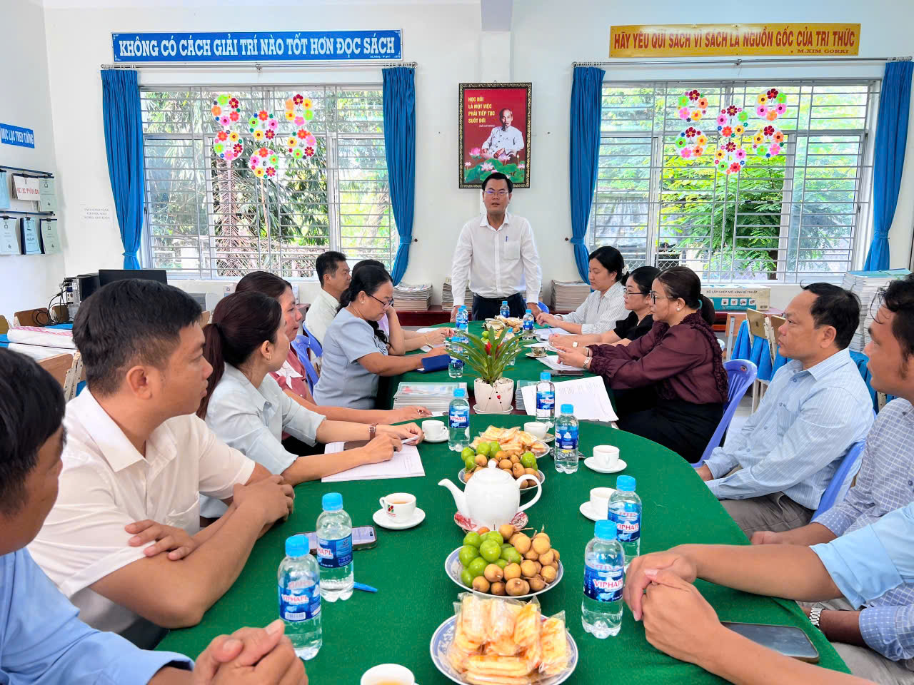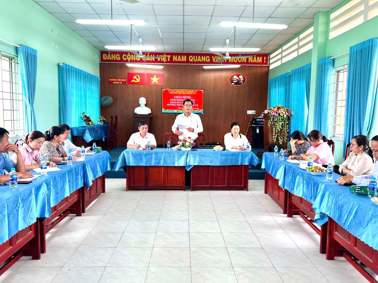 Đoàn công tác của tỉnh Kiểm tra, đánh giá ngoài, công nhận lại trường đạt chuẩn Quốc gia tại Trường Tiểu học Phước Lý.